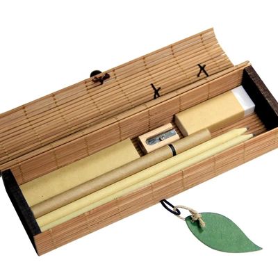 Explore the diverse range of bamboo stationery that seamlessly blends form and function. From bamboo pens with smooth, precision writing to notebooks with covers crafted from sustainable bamboo, each item in our collection is designed to enhance your writing experience while minimizing environmental impact. Immerse yourself in the natural charm of bamboo stationery, where practicality meets eco-conscious design for a workspace that inspires creativity and responsibility.